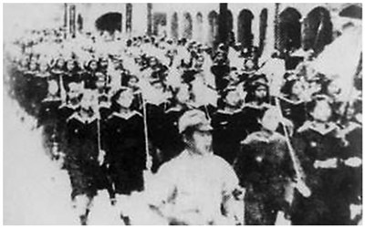 台湾光复后,台湾同胞热烈欢迎祖国军队到来。